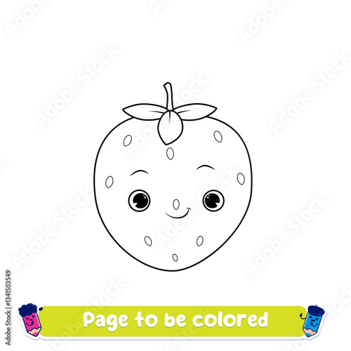 Obraz premium Coloring Page Outline Of cartoon cute Strawberry. Fruits Coloring Book for kid