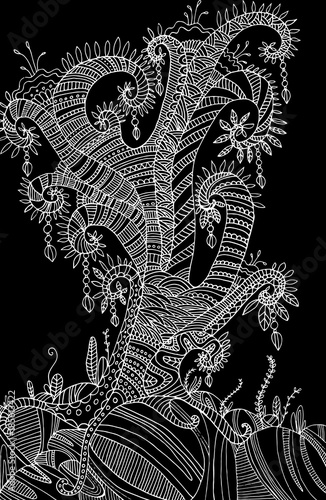 © Olha, Fototapeta premium Coloring page surreal shamanic tree.