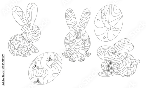 © Hanna, Obraz premium Coloring page with rabbits and Easter eggs