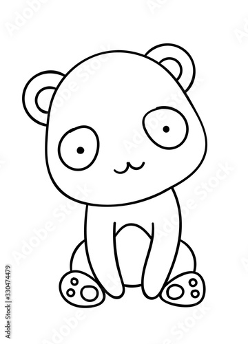 © dikabrina, Fototapeta premium Coloring pages, black and white cute hand drawn panda doodles