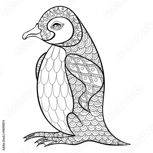 Obraz premium Coloring pages with King Penguin, zentangle illustartion for adu