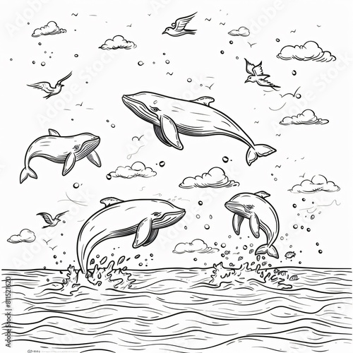 Fototapeta premium Coloring pictures for children and adults Pictures of humpback whales rising...