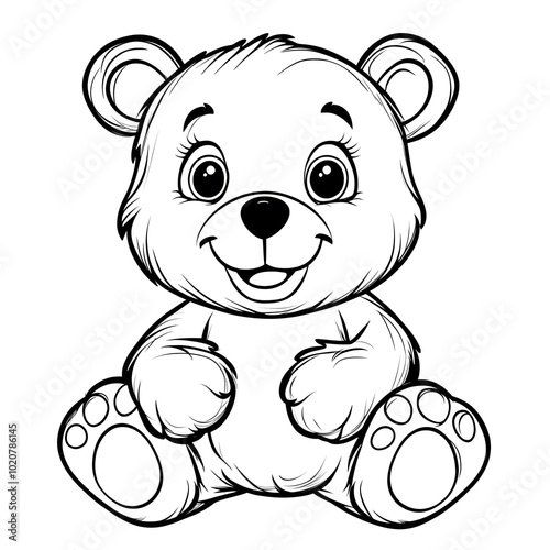 © Mariana, Fototapeta premium Coloring sheet for children with a cute bear. Worksheet, Simple coloring activity for kids. Coloring book