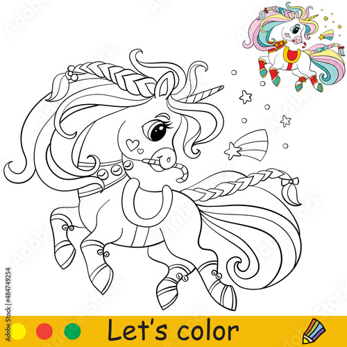 Fototapeta premium Coloring with template christmas unicorn vector illustration