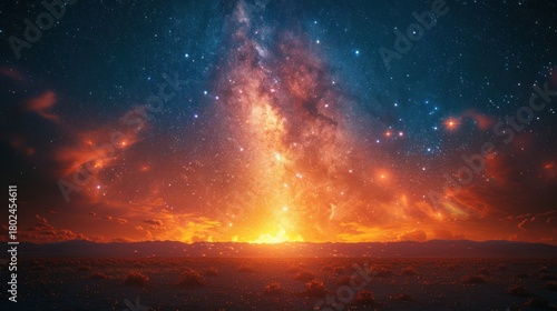 © vimp, Fototapeta premium Colors burst in the night sky, casting a warm glow on the horizon