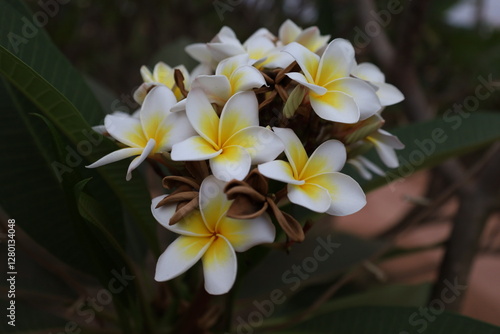 © AiGallery, Fototapeta premium Colourfall flower frangipani Dok Champa in lao new year