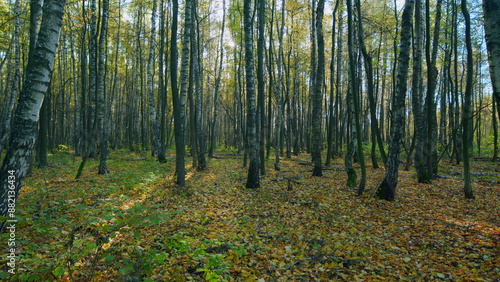 © artifex.orlova, Obraz premium Colourful autumn forest trees in sun. Autumn forest panorama in sunlight. Pan.