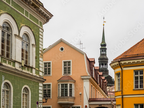 Fototapeta premium Colourful buildings and street of old town of Tallinn in Estonia.