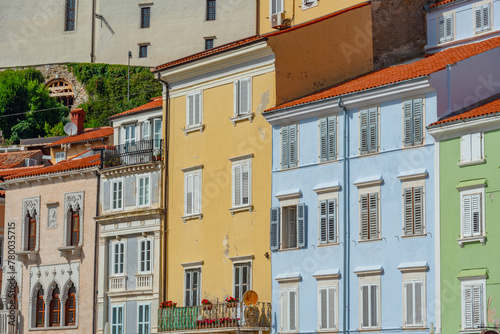 Fototapeta premium Colourful facades at Tartini square in Piran, Slovenia