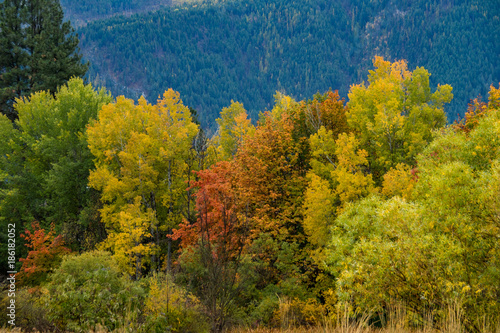© Yi, Fototapeta premium colourful fall leaves on the side of the road