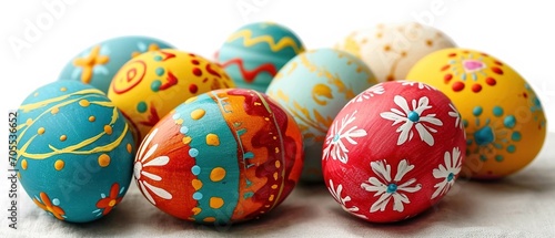 © Danyilo, Obraz premium Colourful hand painted easter eggs. Colorful easter eggs on isolated white background.