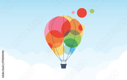 © osket23, Naklejka premium Colourful Hot Air Balloon floating above clouds