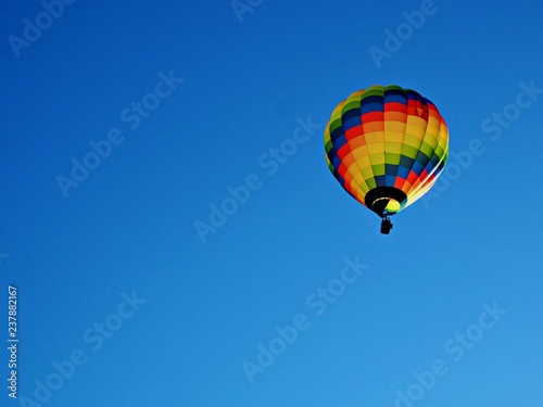 © AngieC, Naklejka premium Colourful hot air balloon in a clear blue sky with copy space