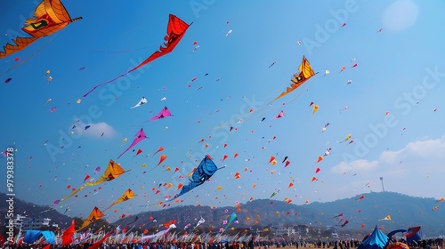 © pixelwallpaper, Obraz premium Colourful kites wallpaper