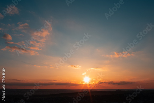 Fototapeta premium Colourful landscape of beautiful dark sunset or sunrise close to evening.