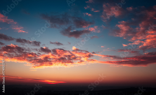 © Lalandrew, Fototapeta premium Colourful landscape of beautiful dark sunset or sunrise close to evening.