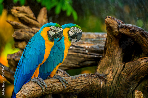 © pushish images, Obraz premium Colourful macaw parrots bird.