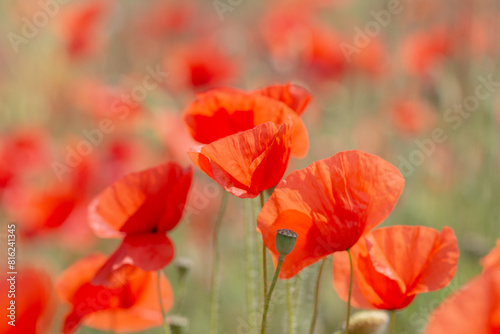 © lemanieh, Obraz premium Colourful poppies in the South Downs on a sunny day