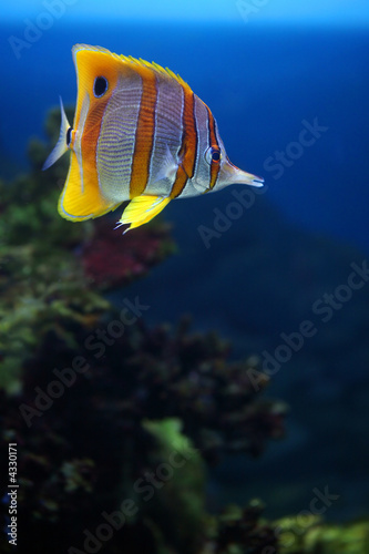 © Offscreen, Fototapeta premium Colourful Sixspine butterfly-fish floats in an aquarium