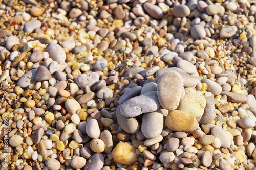 © es0lex, Naklejka premium Colourful stones, pebbles on the beach.