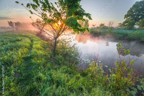 Obraz premium Colourful sunset on the river