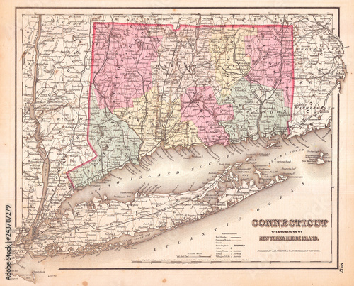 Obraz premium 1857, Colton Mapa Connecticut i Long Island