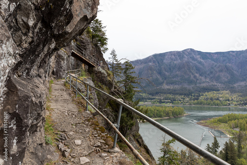 © Hrach, Fototapeta premium Columbia River Gorge and its surrounding beautiful green nature as seen from a hiking trail on Beacon Rock, Washington