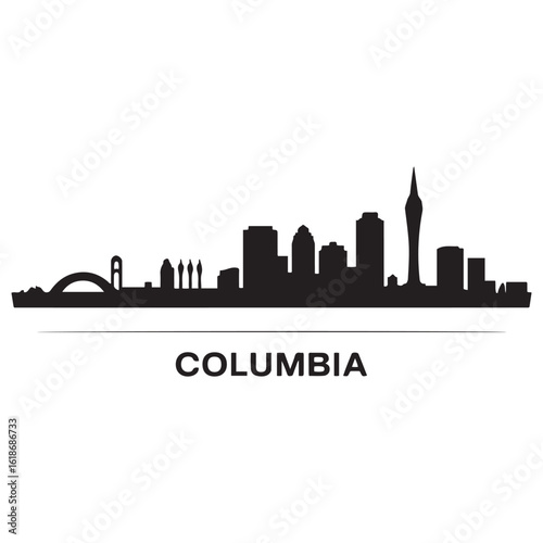 © Nargis, Naklejka premium Columbia skyline horizontal banner. Columbia, South Carolinaa. Vector template for your design. Vector black silhouette. with white background