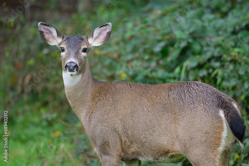 © IanDewarPhotography, Fototapeta premium Columbian Black tailed deer with ears raised and looking at point of view