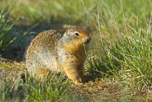 © Gregory Johnston, Fototapeta premium Columbian ground squirrel eating grass.