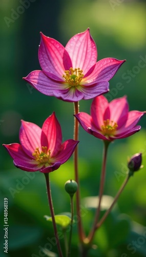 © Janmo, Fototapeta premium Columbine flowers blooming in the morning dew, natural, dew