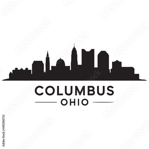 Naklejka premium Columbus city skyline horizontal banner. Black Columbus city, Ohio. Vector template for your design. Vector black silhouette. with white background