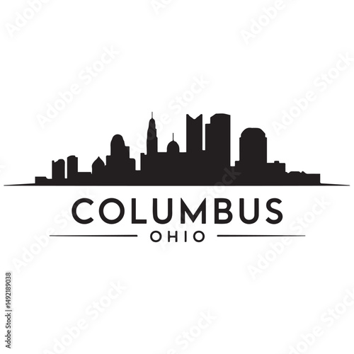 © firoz, Fototapeta premium Columbus city skyline horizontal banner. Black Columbus city, Ohio. Vector template for your design. Vector black silhouette. with white background