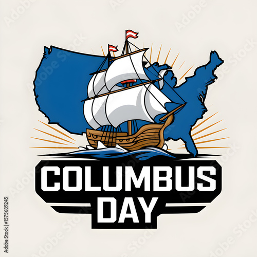 © Yasir Ghafoor, Naklejka premium Columbus Day Holiday sailing ship on a postage stamp