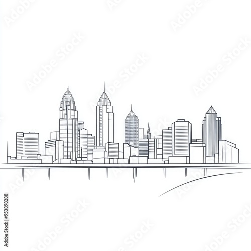 © Serhii, Fototapeta premium Columbus Skyline Outline. A Cityscape Illustration of Columbus, Ohio with Architectural Landmarks