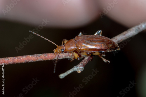 Naklejka premium Comb-clawed Darkling Beetle - Alleculini sp. - side view on twig