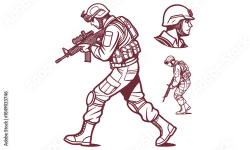 © MdAlamin, Fototapeta premium Combat Soldier Character with Military Badges Collection