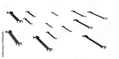 © igor.nayda, Naklejka premium Combination open-end wrenches. Transparent background. 3D Rendering.