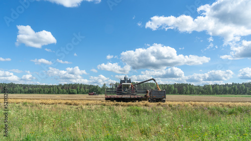 Fototapeta premium Combine harvester harvesting on the field. Harvesting wheat. Harvester...