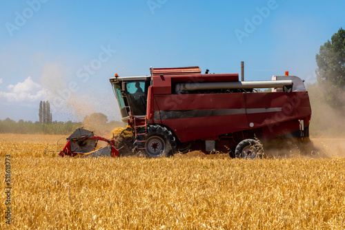 © Collab Media, Obraz premium Combine Harvester Harvesting Wheat In Agricultural Field
