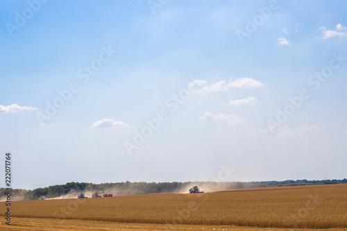 © Natalia, Obraz premium combine harvester harvests grain on the field in Russia