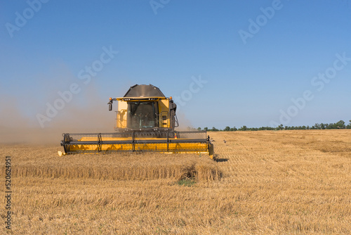 Fototapeta premium Combine harvester harvests wheat in a wheat field