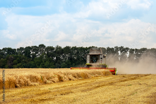 © vrstudio, Fototapeta premium Combine harvester in action on wheat field.