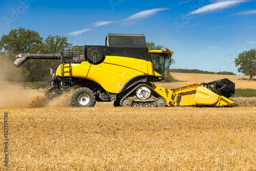 © Wolfgang Jargstorff, Fototapeta premium Combine harvester on the almost harvested cornfield - 1900