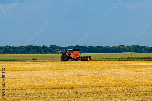 © ihorbondarenko, Obraz premium Combine harvester working at the wheat field. Agricultural concept