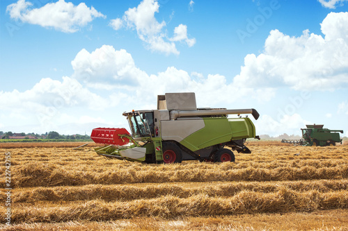© ValentinValkov, Obraz premium Combine Harvesting large wheat field