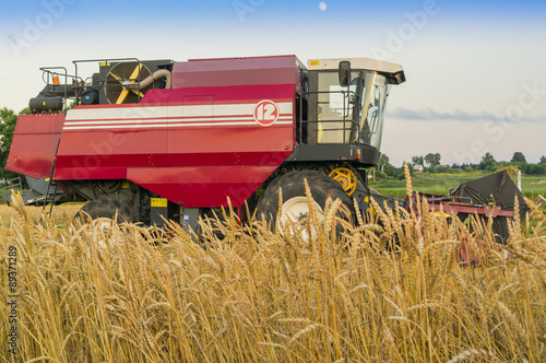 Fototapeta premium Combine harvesting wheat with selective focus