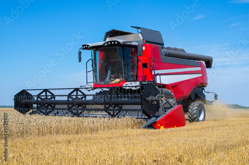 © makaule, Fototapeta premium Combine in the field during grain cleaning