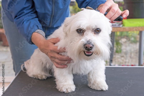 Obraz premium Combing the head of white Maltese dog