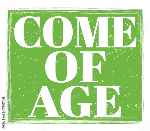 Fototapeta premium COME OF AGE, text on green stamp sign